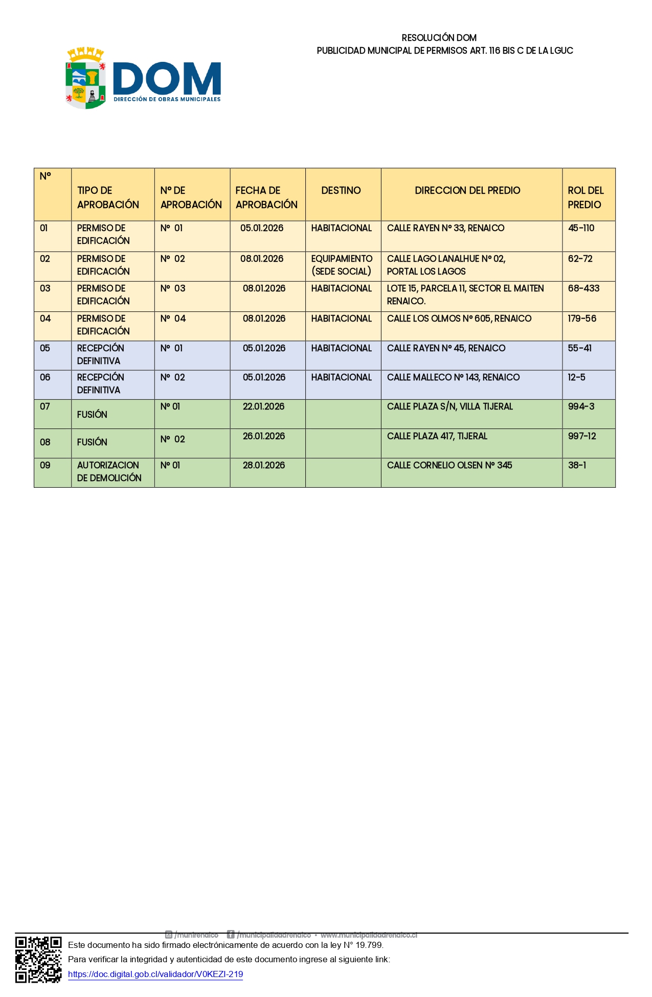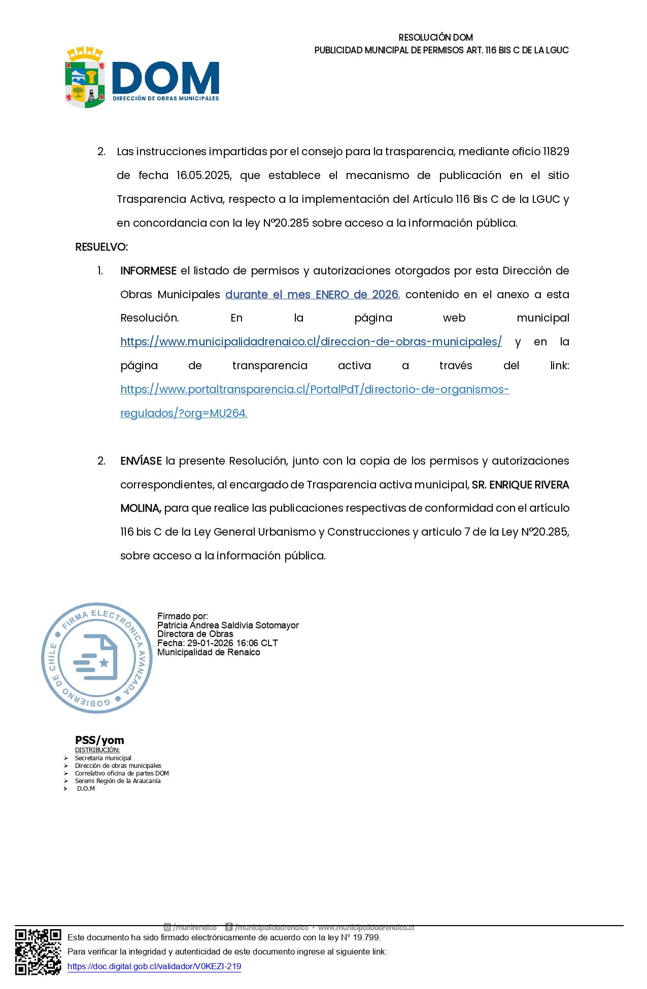 Resolución Dirección de Obras Municipal Publicidad Municipal 2 de marzo de 2026 Resolución N°1/2026 Compartir FacebookTwitterWhatsAppLinkedinEmailImpresiónTelegram