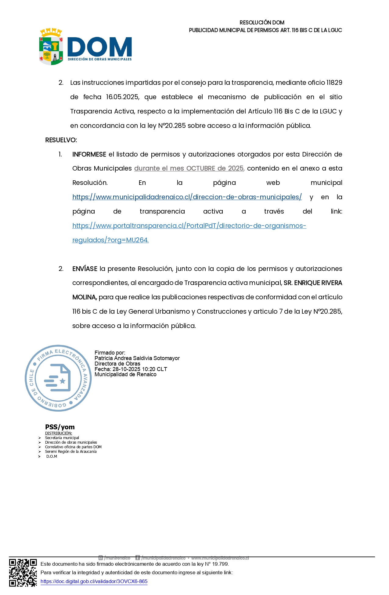 Resolución Dirección de Obras Municipal Publicidad Municipal