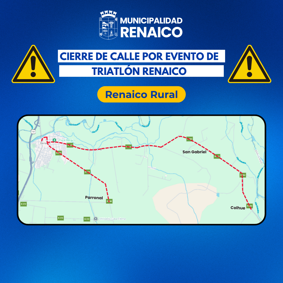 El domingo 7 de diciembre, la Ilustre Municipalidad de Renaico colaborará con el retorno de la tradicional Triatlón de Renaico 2025, importante actividad que regresa al calendario local con el propósito de promover el deporte, fortalecer la vida comunitaria y potenciar el desarrollo turístico de la comuna.